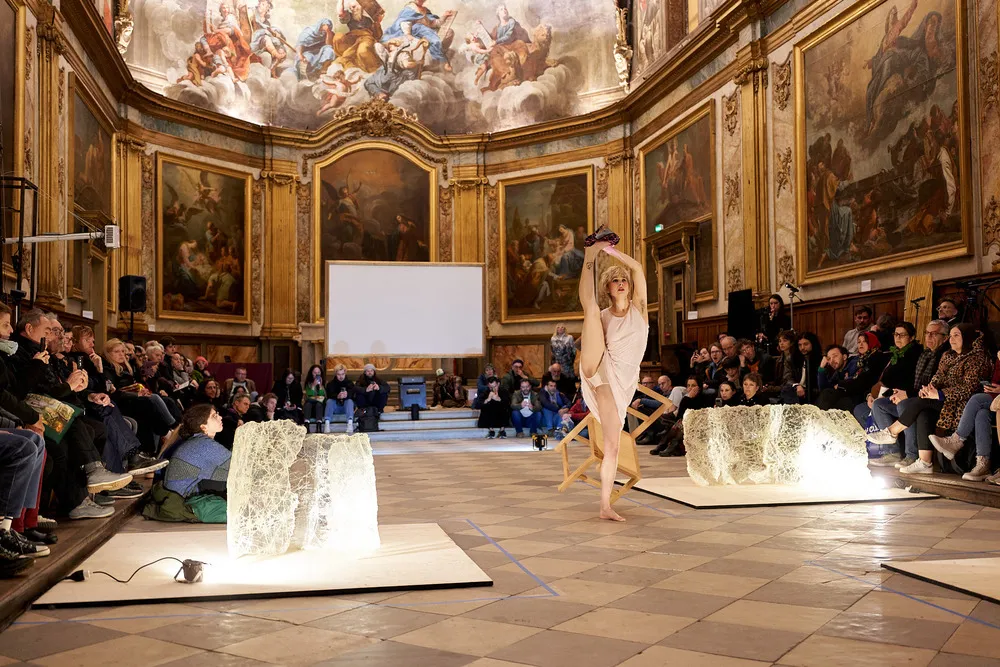 Mais peu à peu, cette façade se fissure. Son corps s’engage dans des postures de plus en plus acrobatiques, sa gestuelle se fait plus animale, plus organique. La performance se prolonge dans un rapport de tension entre l’élan naturel du corps et les injonctions sociales : c’est une lutte, silencieuse mais palpable, entre l’identité imposée et la nature animale qui résiste.
